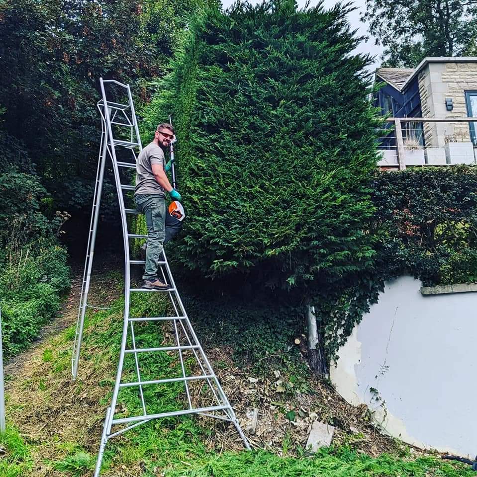 All work will be carried out in the safest manner, using the correct ladders, hedge cutters/tools. The ladders I use are free standing and can level out the most uneven ground. So, no matter if the hedge is on a slope, or above a ditch, I can assure you that I will work in the safest of ways. In some cases, scaffolding may be required, depending on the size, I will employ a professional to install. All waste will be removed in the correct manner, with waste carriers’ licence to hand, and paper trail of removal if so required.